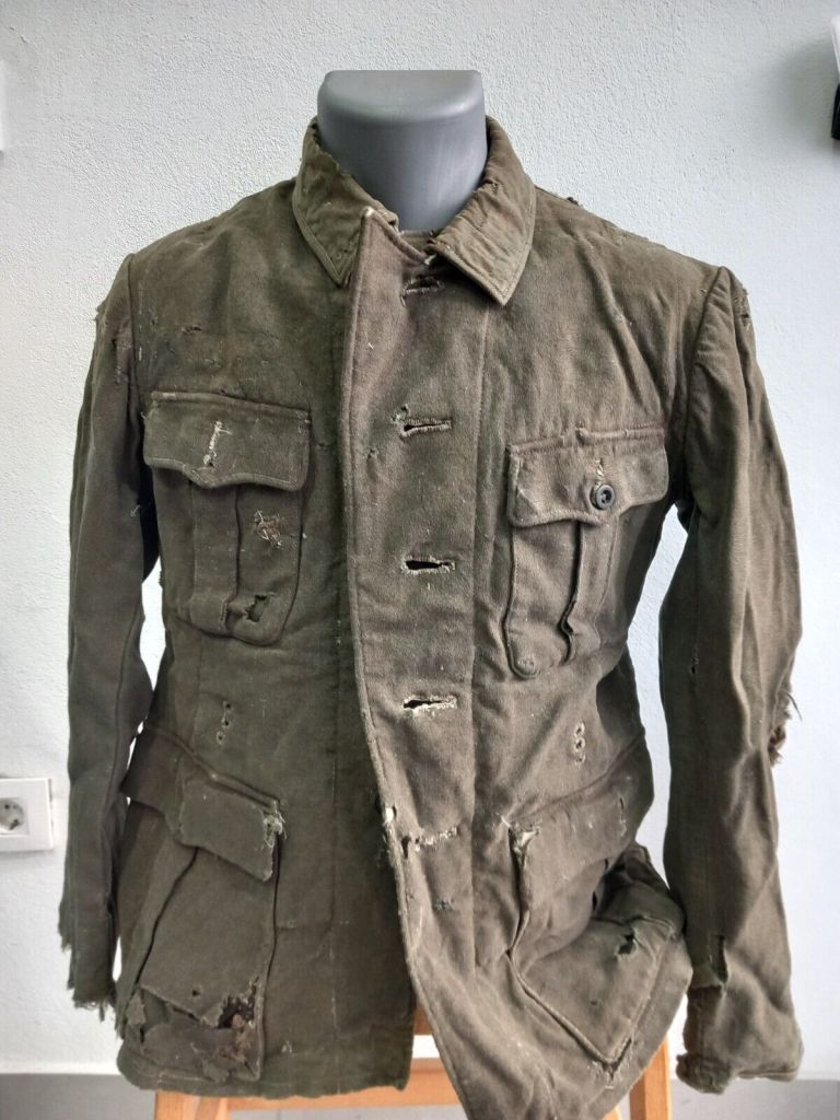 | Giacca in panno truppa Tedesca WH 2WW Feldebluse Wehrmacht German Uniform WW2, nelle condizioni come si vede ritrovata in un baule, da utilizzare per pezzi di ricambio o da ricostruire. |